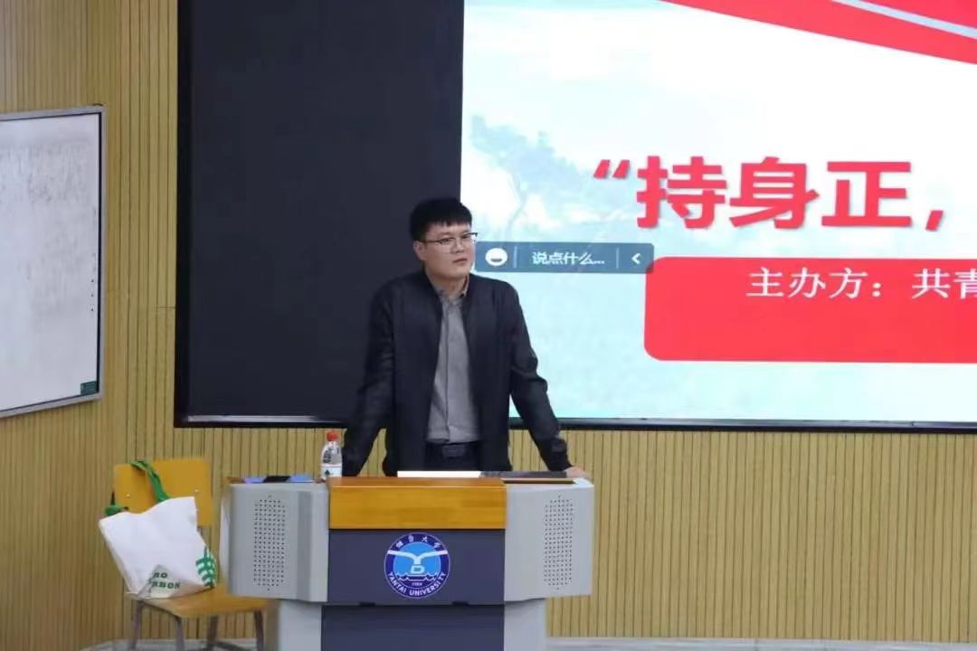 为深入学习贯彻党的二十大精神,引导员工坚定理想信念,端正入党动机,9428cn太阳集团古天乐于12月1日晚6:30在二教104开展了以“从留学视角看马克思主义传入中国”为主题的党课讲座。此次党课由公司党总支书记张西俊主讲,公司全体入党发展对象、入党积极分子参加。